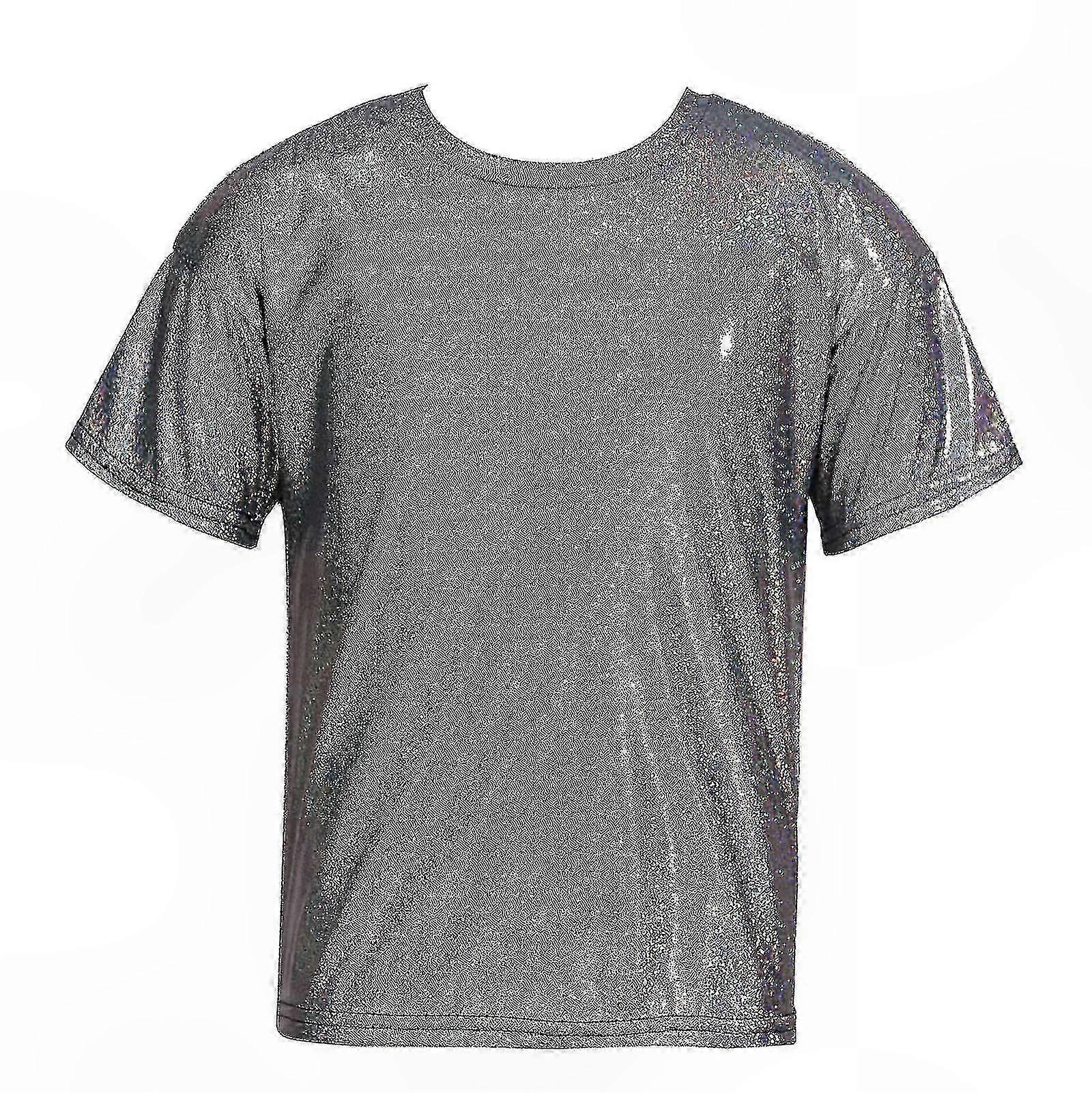 Shiny Metallic T-Shirt for Kids Boys Girls Sparkle Loose Fit Short Sleeve Top Stage Performance Jazz Hip Hop Dance Costume