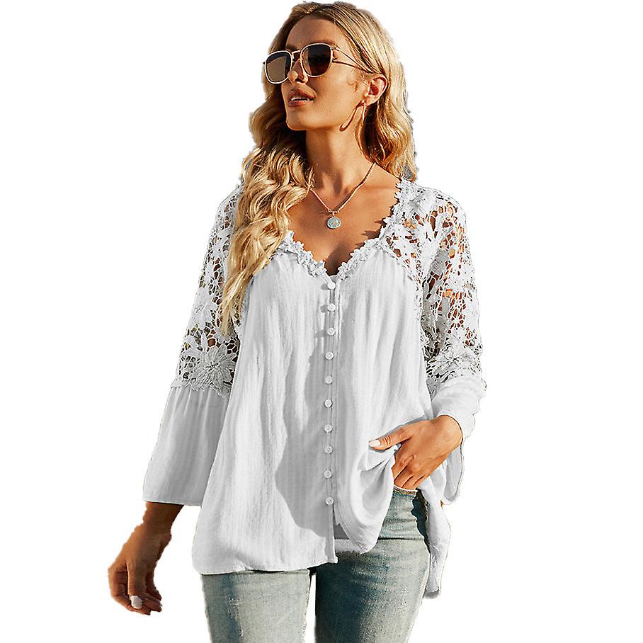Women T Shirt Summer Tops 2022 Summer V-neck Lace Loose