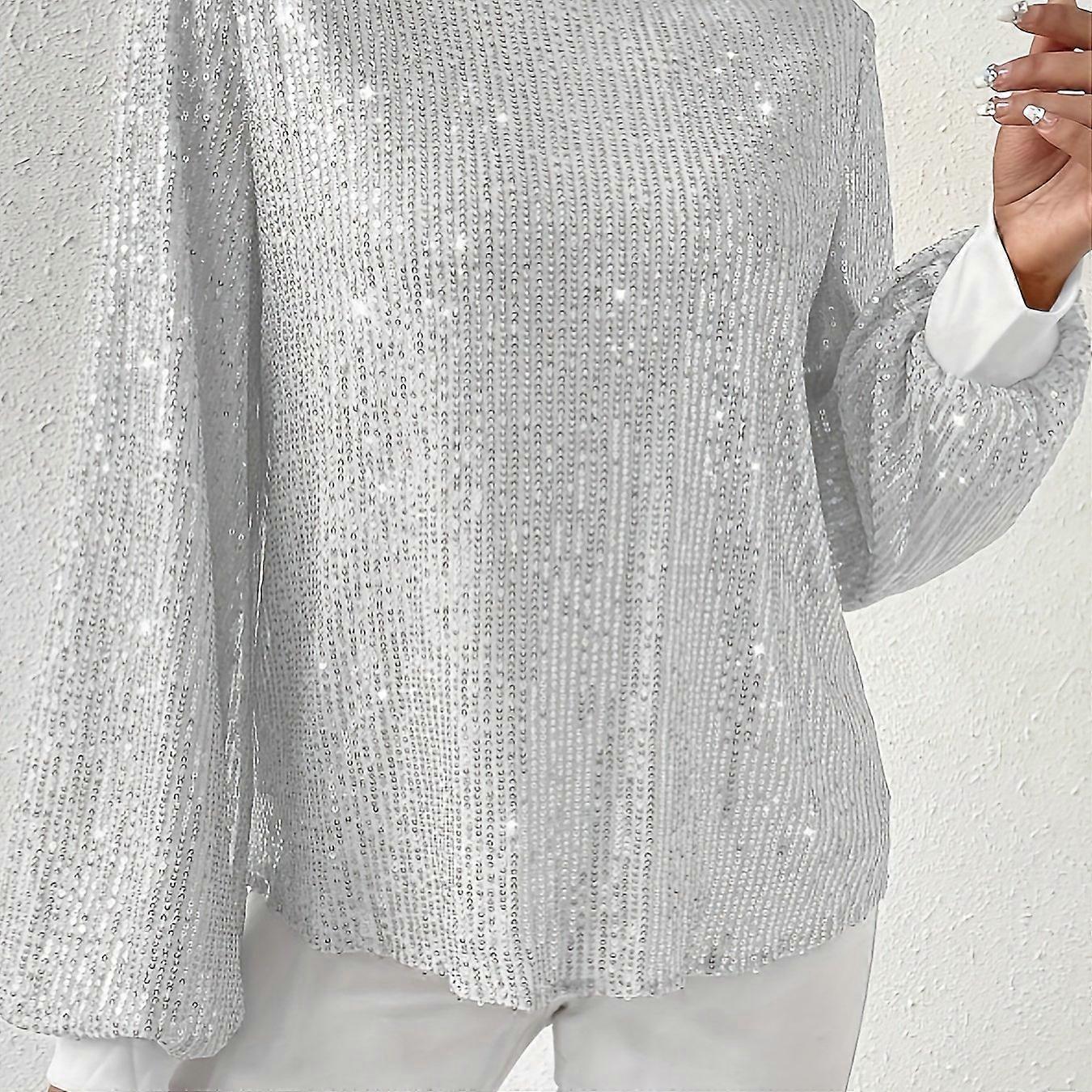 JUNGE Sequined Crew Neck T-Shirt, Casual Long Sleeve Top For Spring & Fall, Women's Clothing SZJG240306
