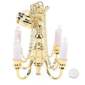 ثريا بيت الدمية بمقياس 1/12 تعمل بالبطارية، مصباح سقف مصغر بأربعة رؤوس، ذهبي