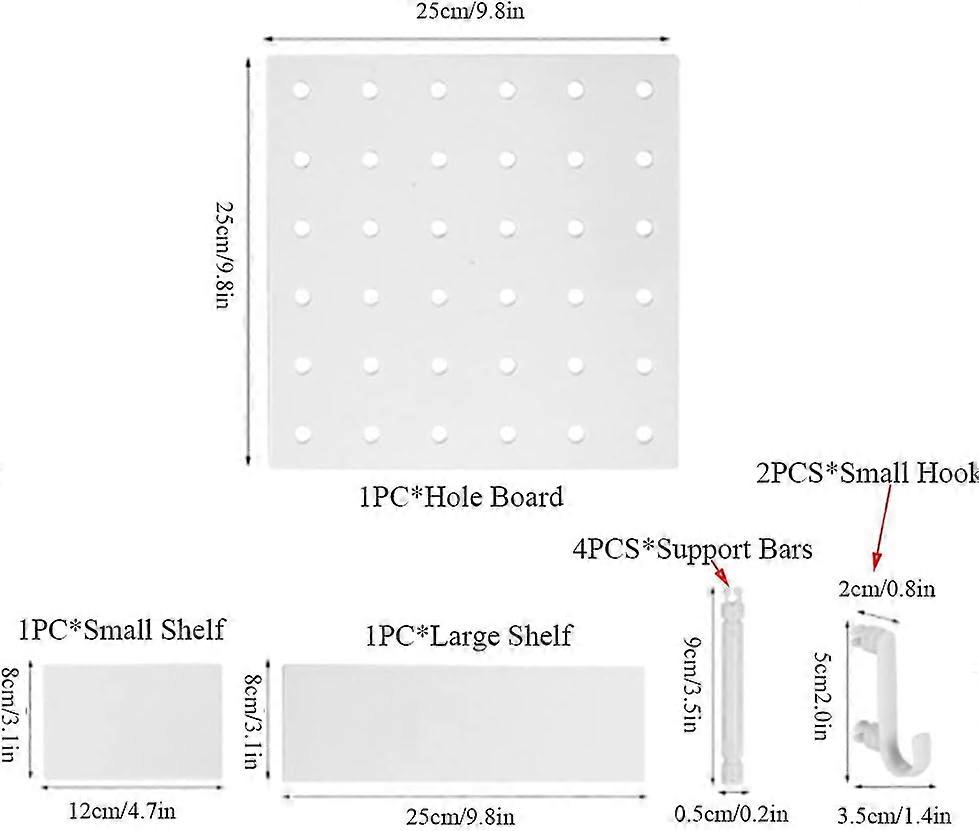 Perforated Plastic Wall Shelf Kit No Drilling - For Home, Kitchen, Bathroom, Office - White