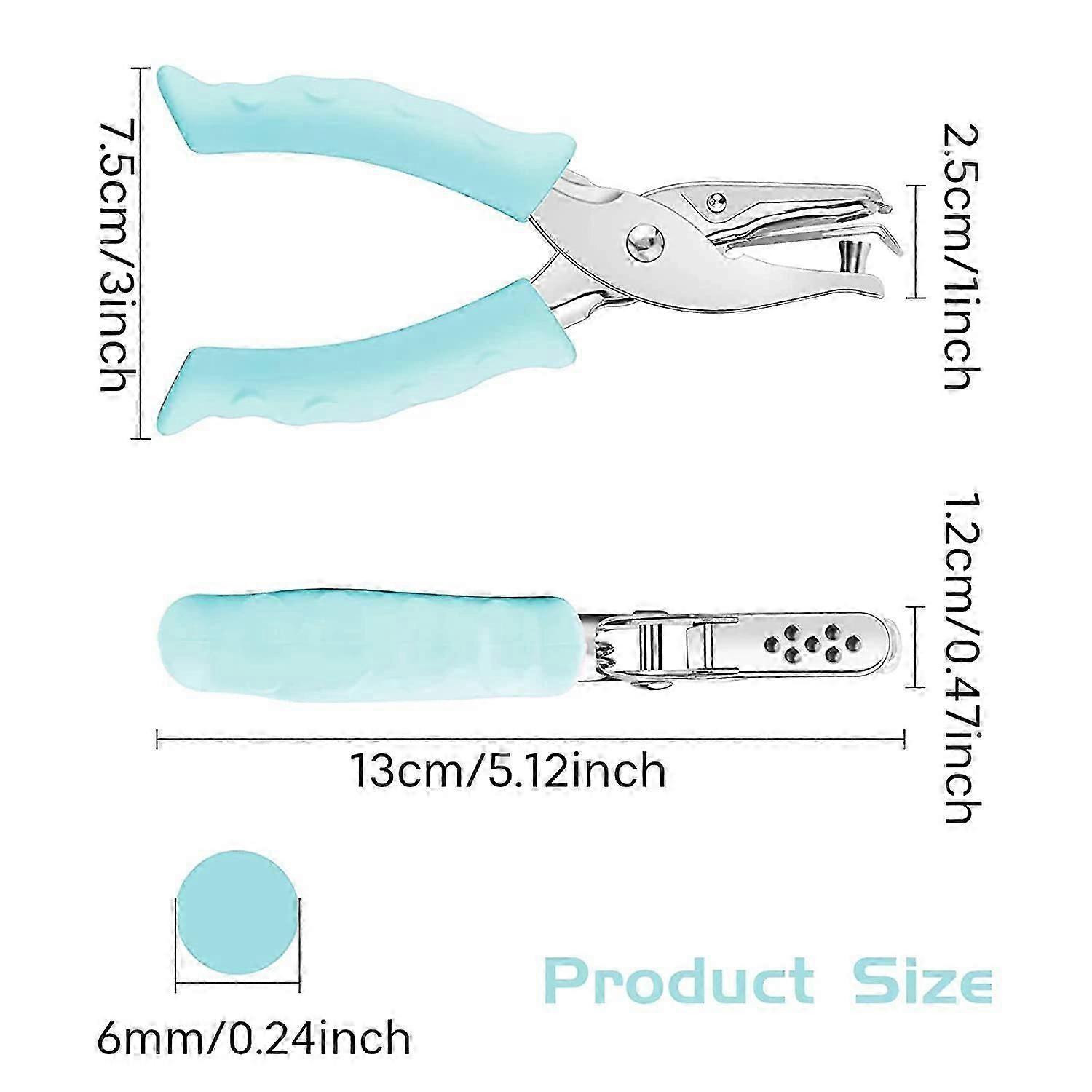 MaterialOur single hole punch is made of high-quality metal material, which is rust-proof and durable, while the strong joint structure makes it easy and stable to use. Vibrant macaron green, beautiful and cute, suitable for gifting to friends. Non-Slip HandleSoft non-slip green rubber handle brings maximum comfort and easy punching, avoiding hurting hands. 1/4 Inch Hole PunchThe size of the hole punch is 13.5*7*2cm, the hole diameter is 1/4 inch (6mm), cutting cleanly and neatly, up to 8 sheets of A4 paper at a time. Avoid MessOur single hole punch easily catches punch debris and avoids any mess. Wide ApplicationThe single hole punch can be widely used for punching holes in paper, plastic boards, PVC cards, etc. Great tool for home, school and office.