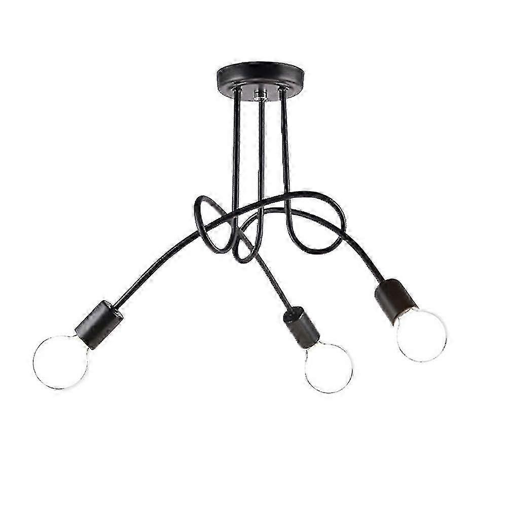 Three Head Black Bent Tube Ceiling Light, LED Iron Twisted Tube Ceiling Light For Living Room, Dinin