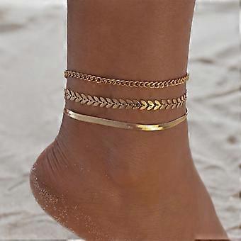 ثلاث طبقات خلخال الكاحل سوار سلسلة القدم يترك مجوهرات القدم