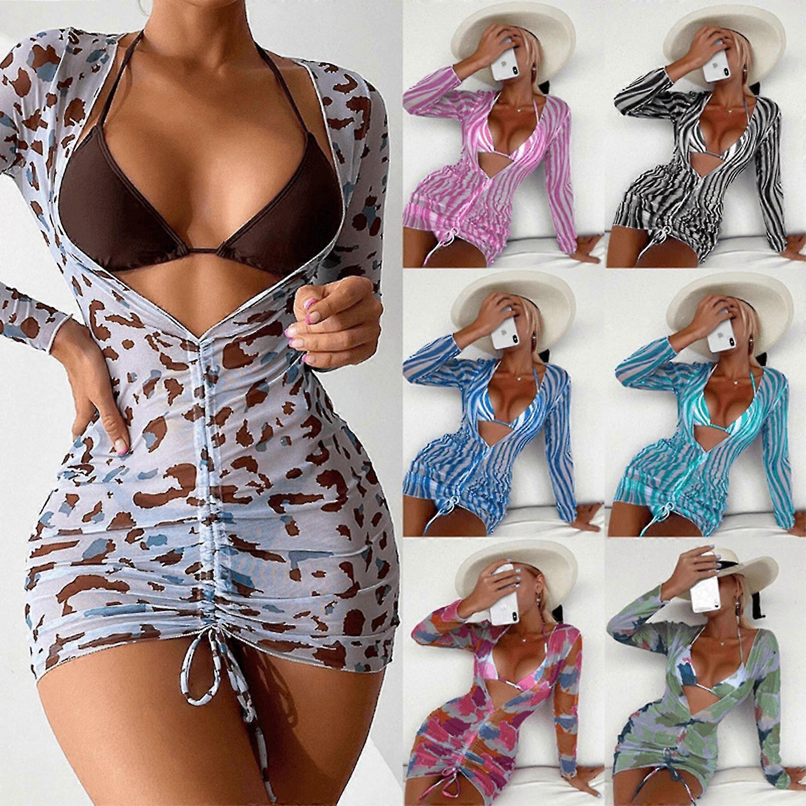 Three-pieces Female Printed Soft Bag Bikini Set Knotted Women Sexy Bathing Suit