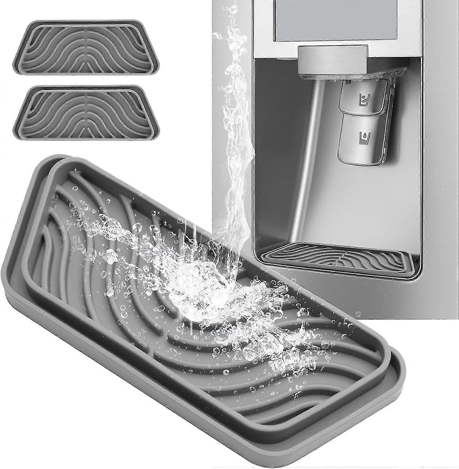 Refrigerator Drip Catcher,Fridge Water Dispenser Drip Tray Prevents Water Splashes,Non-slip Silicone Dispenser for Ge Samsung -2 PCS Grey