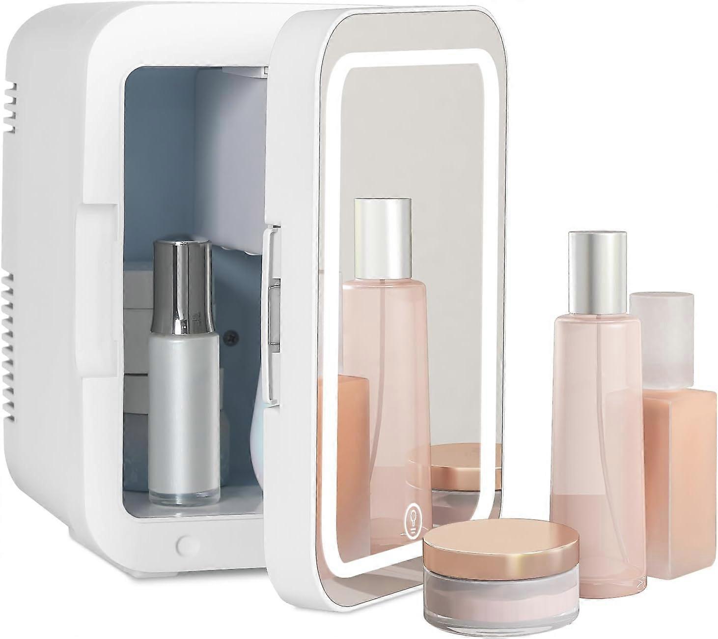 Skincare Fridge - Mini Fridge with Dimmable LED Mirror (4 Liter/6 Can), AC/DC Portable Beauty Fridge, for Refrigerating Makeup, Skincare and Food, Min
