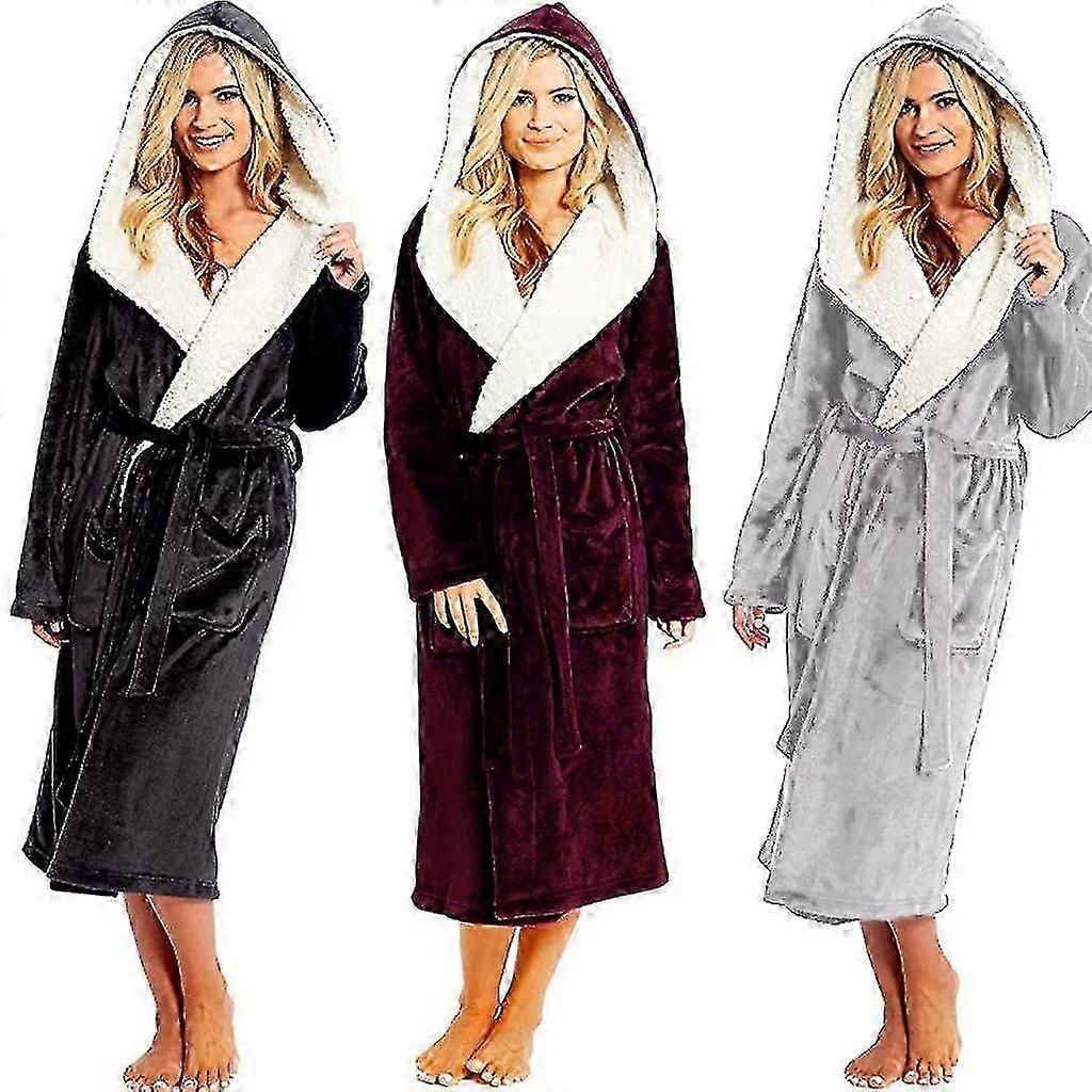 Women's Hooded Dressing Gown - Soft & Warm Fleece Robe for Winter Comfort