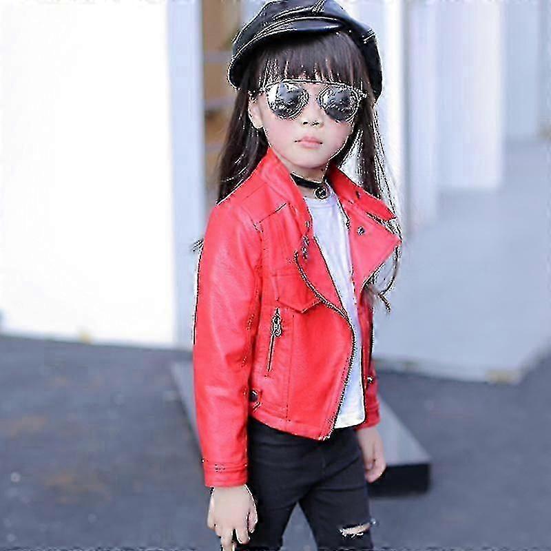 Girls Pu Jacket Rivet Zipper Jacket Leather Clothing Girls 5-13 Years Old Classic Zip Leather Coat
