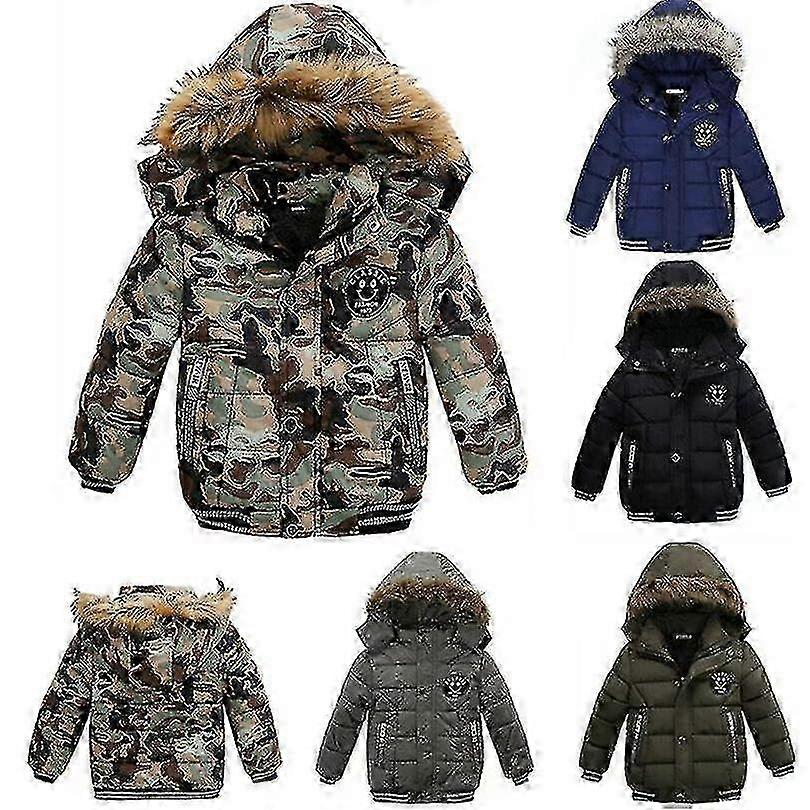 New Kids' Hooded Jacket with Faux Fur Collar - Winter Cotton Coats for Boys