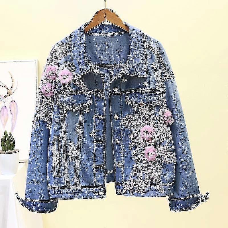 Jeans Jacket Embroideried 3d Flowers Hole Cowboy Outerwear Spring Autumn Causal Denim Coat