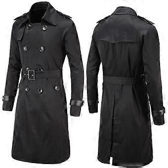 جاكيت معطف ترنش كلاسيكي على الطراز البريطاني للرجال، معطف ترنش أنيق مزدوج الصدر، طويل ونحيف، مناسب للخروج، بحزام قابل للتعديل