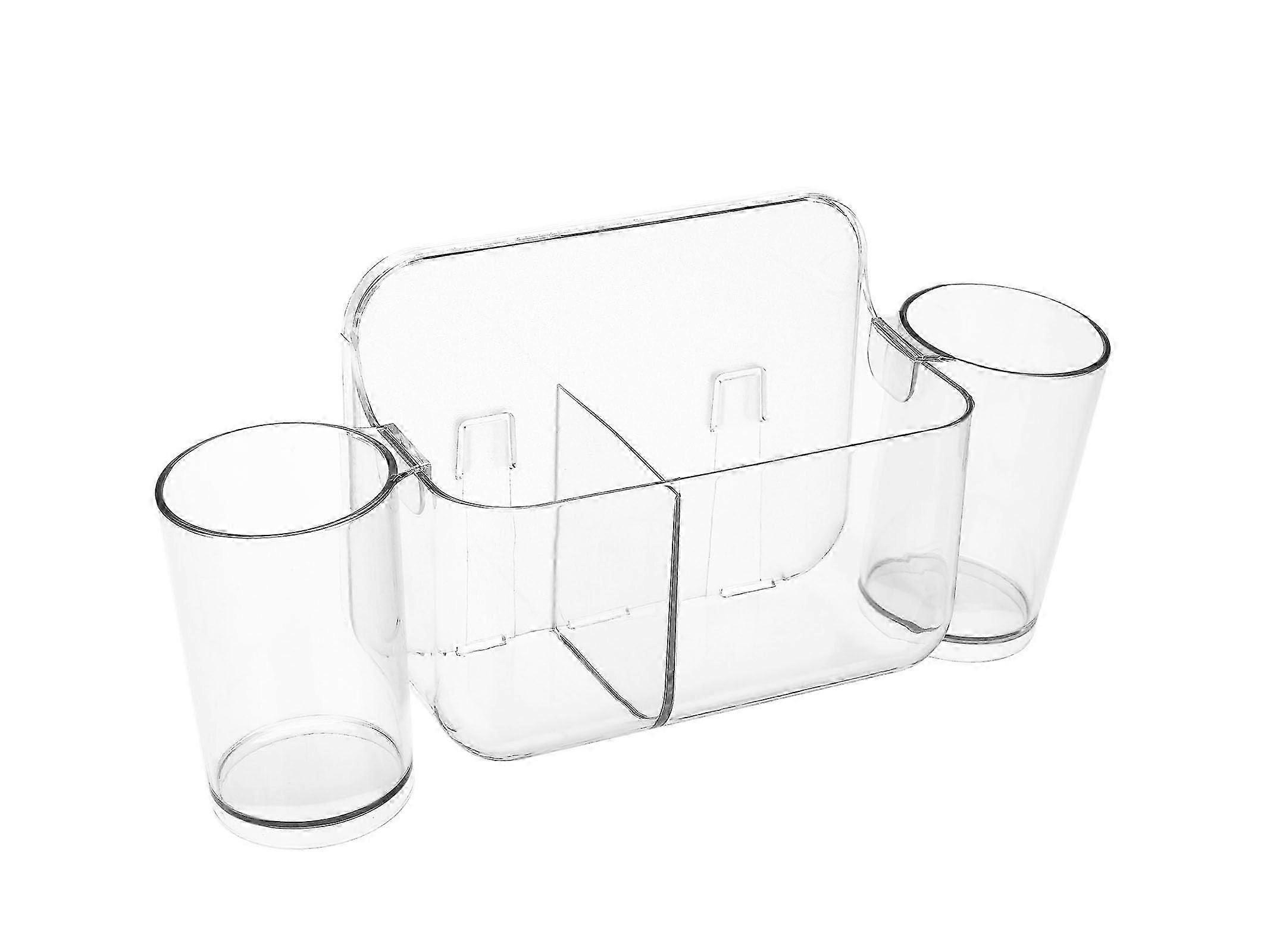 Adhesive wall - mounted acrylic bathroom organizer with 2 cups