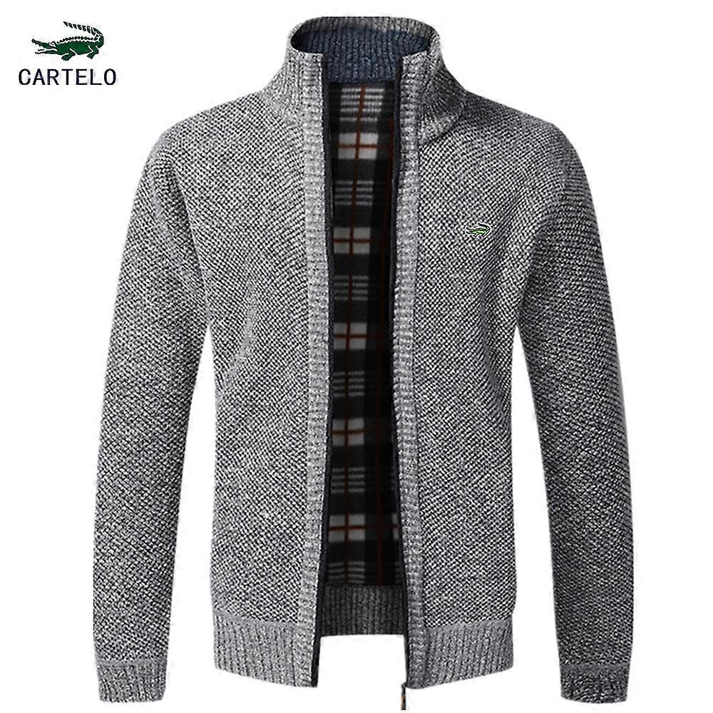 New Autumn Winter Men's Jacket Solid Color Embroidery Jackets Men Slim Fit Stand Collar Zipper Thick Warm Jacket Men