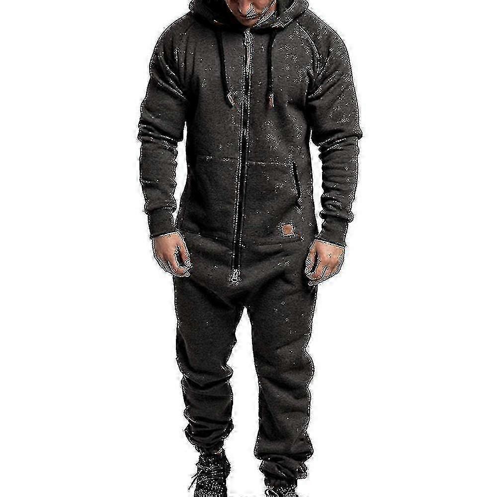 New Winter Men's Casual Hooded Zip Jumpsuit Playsuit - High-Quality Onesie Hoodie Romper