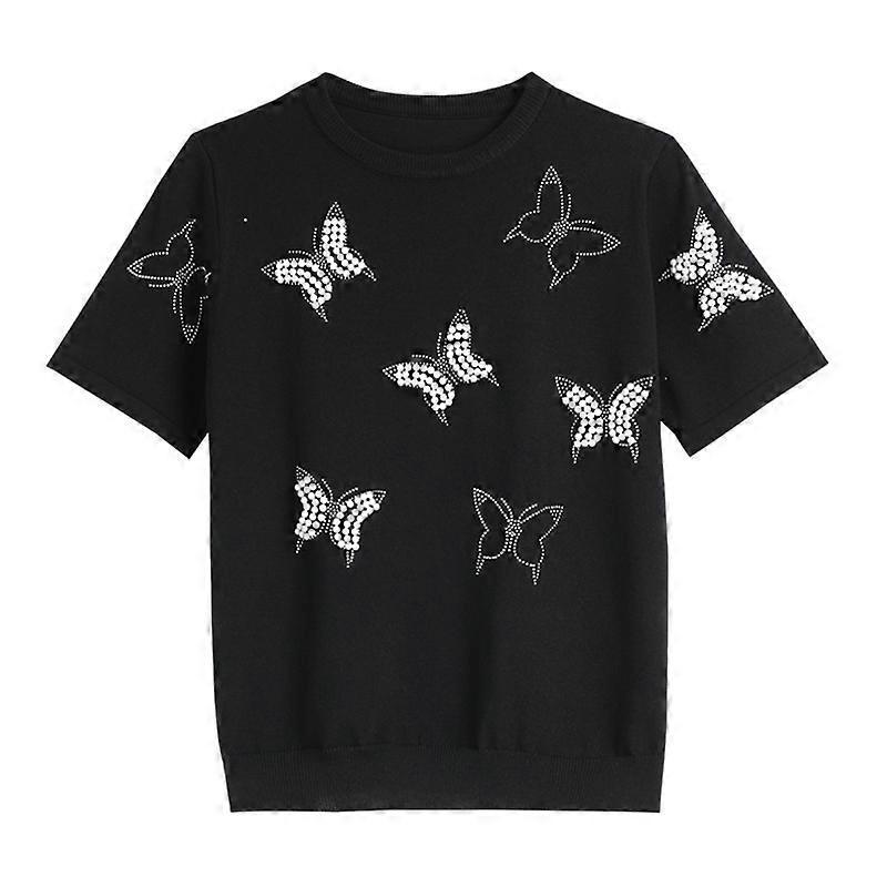 New Summer Butterfly Nail Bead Short Sleeve Top Knitted Sweater Fashion Thin Casual Pullover Women's Knitted Sweater