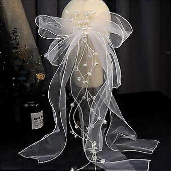 New Bride Wedding Dress Headdress Net Yarn Handmade Veil Beautiful Temperament Side Clip Bow Wave Hairpin White Mesh Veil Clips