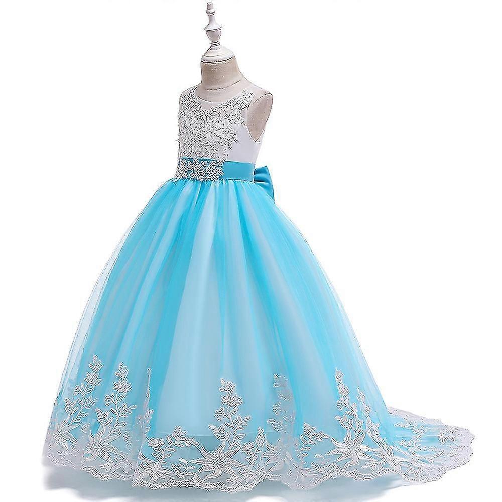 New Girls Dress Princess Dress Embroidered Girls Wedding Dress Long Bow Bow Tail Evening Dress For 4-15 Year Old Girl