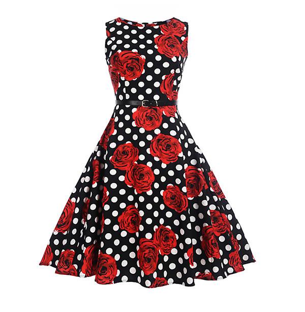 New Classic Fashion Outlet Women's Spring And Summer Retro Hepburn Style Waist And Slim Big Swing Dress With Belt