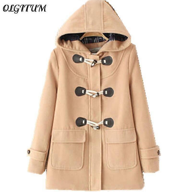 New Women Hooded Wool Coat Long Section Horn Layered Jackets Button Cotton Padded Warm Loose Wool Coat Winter