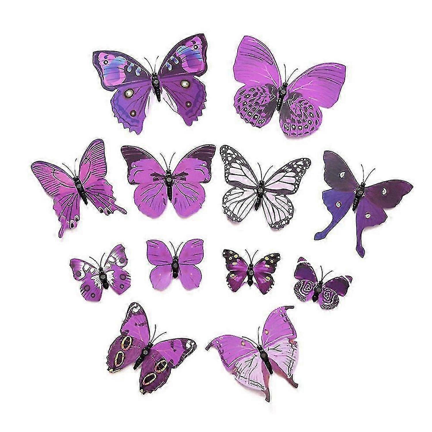 New Art Design Decal Wall Stickers 3D Butterfly Wall Stickers Home Decor Room Decoration 12pcs (Pur