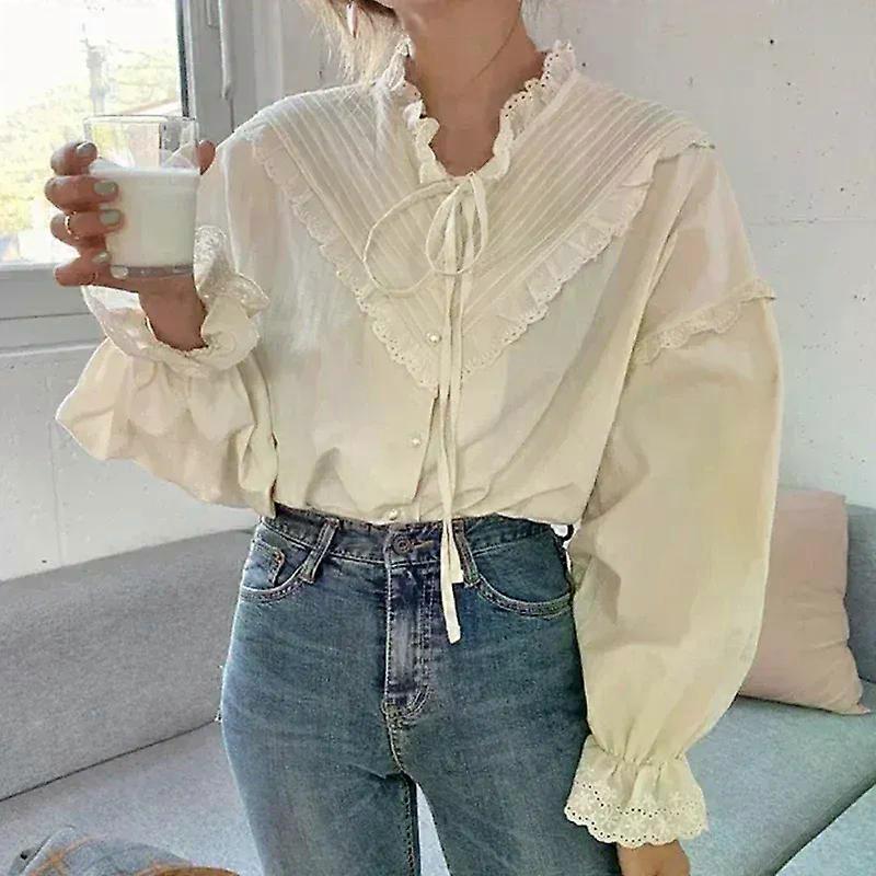 New Spring Summer Vintage Fashion Long Sleeve Women Lace Blouse Elegant Hollow Out Solid Lace Up Bow Loose Blouses Blusas 9580