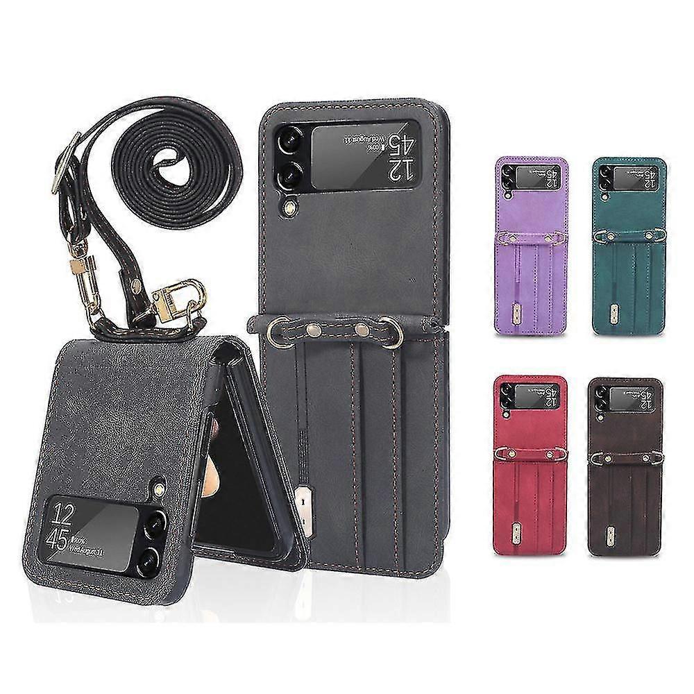 New Samsung Galaxy Z Flip 3 Wallet Case With Card Holder Strap Pu Leather Crossbody Flip Protective Cover For Women,black