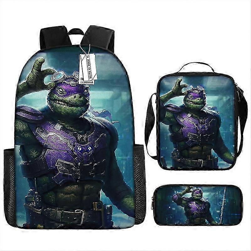 New Teenage Mutant Ninja Turtles Cartoon Shoulders Backpack Three-piece Set Bag Pen Bag Students Large-capacity Anime Schoolbag