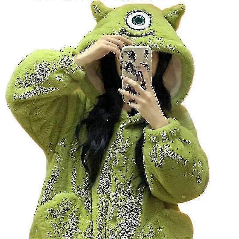 New Cute Mike Wazowski Hooded Coral Velvet Pajamas Home Pajamas Outwear Thermal Pajamas Set