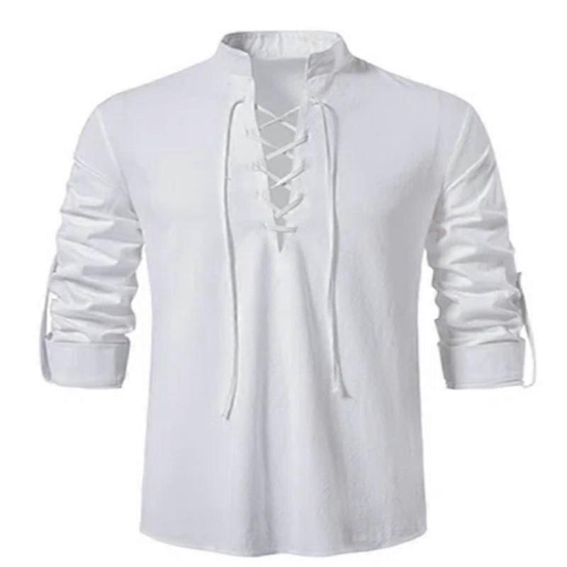 New Men's V-neck Shirt T-shirt Fashion Vintage Thin Long Sleeve Top Men Casual Breathable Viking Front Lace Up Man Shirts
