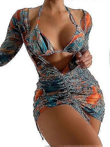 New Women's 3 Pieces Halter Bikini Swimsuit With Ruffle Beach Skirt