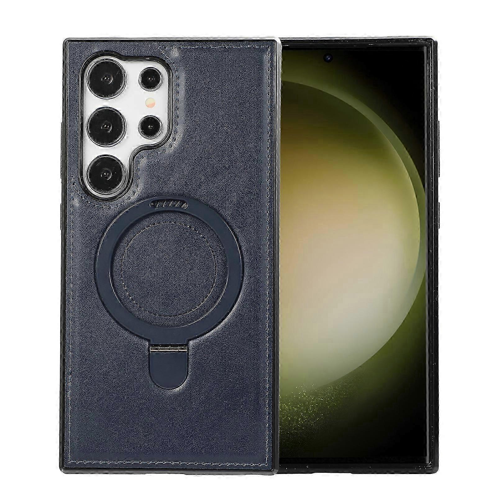 for Samsung Galaxy S24 Ultra Case with Magnetic Invisible Ring Stand, PU Leather Business Phone Case Compatible with Magsafe, Shockproof Protection Sl