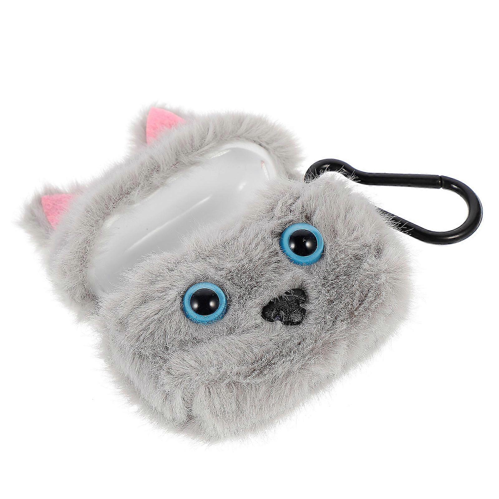 Plush Cat Earphone Case Cute Grey Protective Sleeve for Reliable Earbuds Cover, Lightweight Compact Design with Unique Backpack Suspension Feature