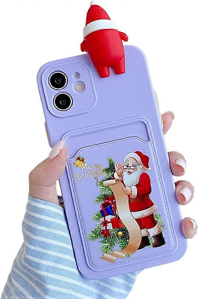 Christmas Case for iPhone 13 Pro Max,Cute Funny 3D Cartoon Santa Claus Design with Card Slot Soft TPU Ultra-Thin Anti-Fall Protective Case for Xmas (E