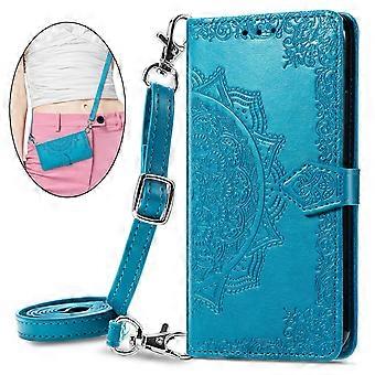 جراب لآيفون 14 برو أزرق ياباني وكوري حقيبة رسول حبل طويل خصر كروس بودي No5872