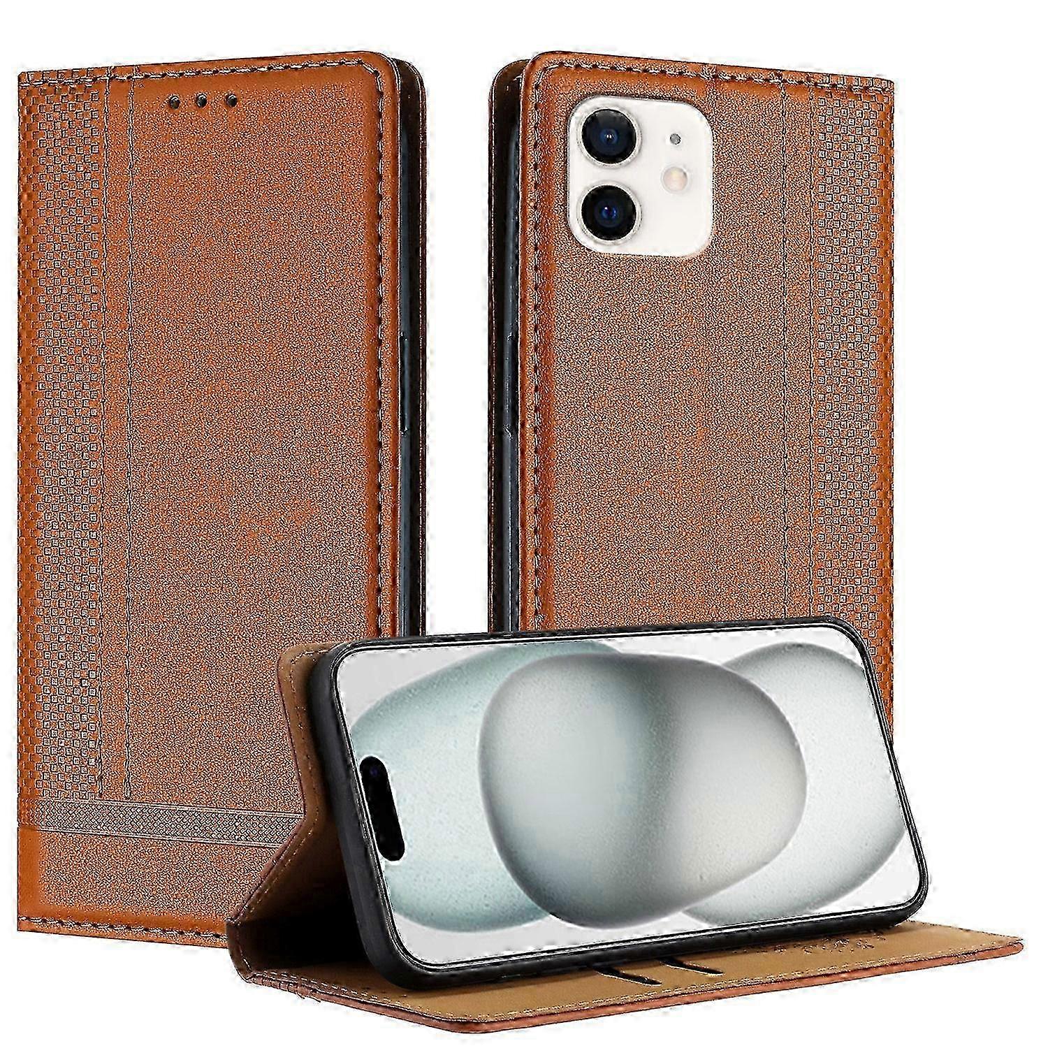 Case For iPhone 12 Mini, Vintage Stitch Leather Wallet Case Card Slot Kickstand Magnetic Closure Shockproof Flip Folio Case Cover