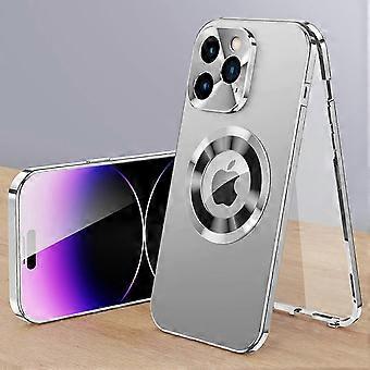 جراب لهاتف iPhone 15 Pro Max / 15 Ultra ، حماية على الوجهين متوافق مع Magsafe الامتصاص المغناطيسي المصد المعدني الأمامي الزجاج المقسى