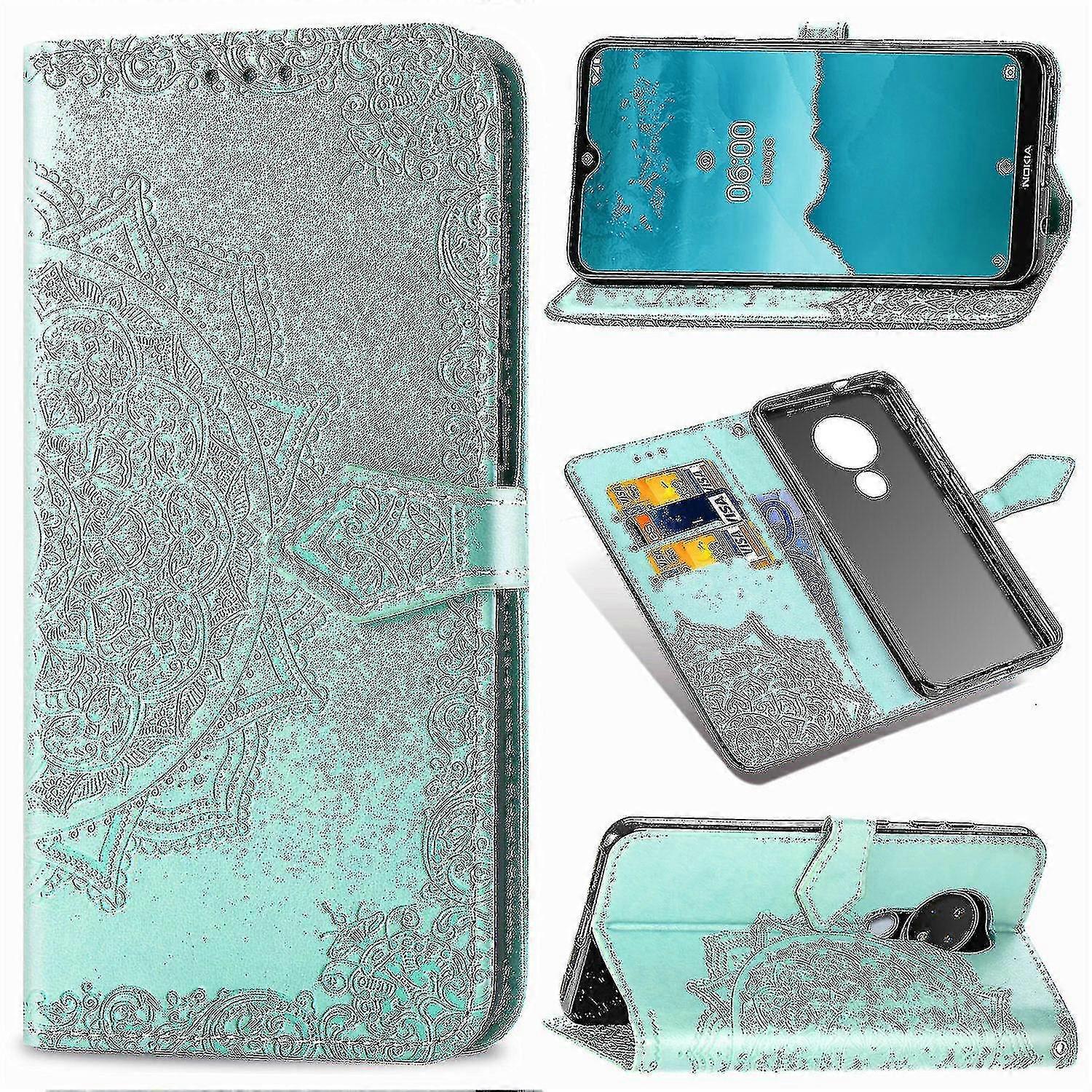 Nokia 6.2/nokia 7.2 Case Leather Wallet Cover Emboss Mandala Magnetic Flip Protection Shockproof - Green