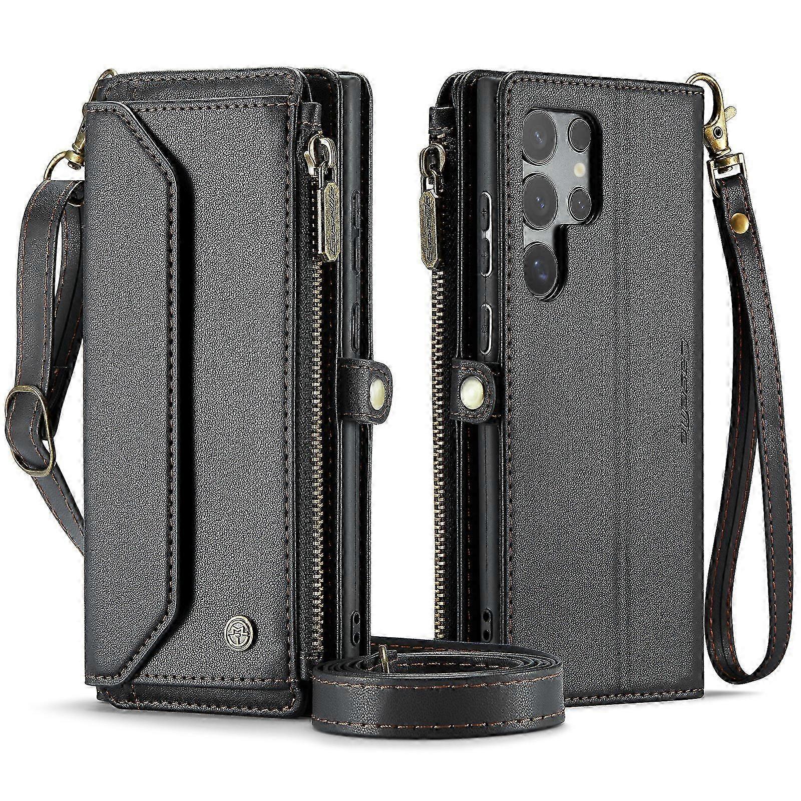 Crossbody Wallet Case For Samsung Galaxy Z Fold 6 with RFID Blocking, Magnetic Flip Zipper Card Holder Leather Case with Hand Strap