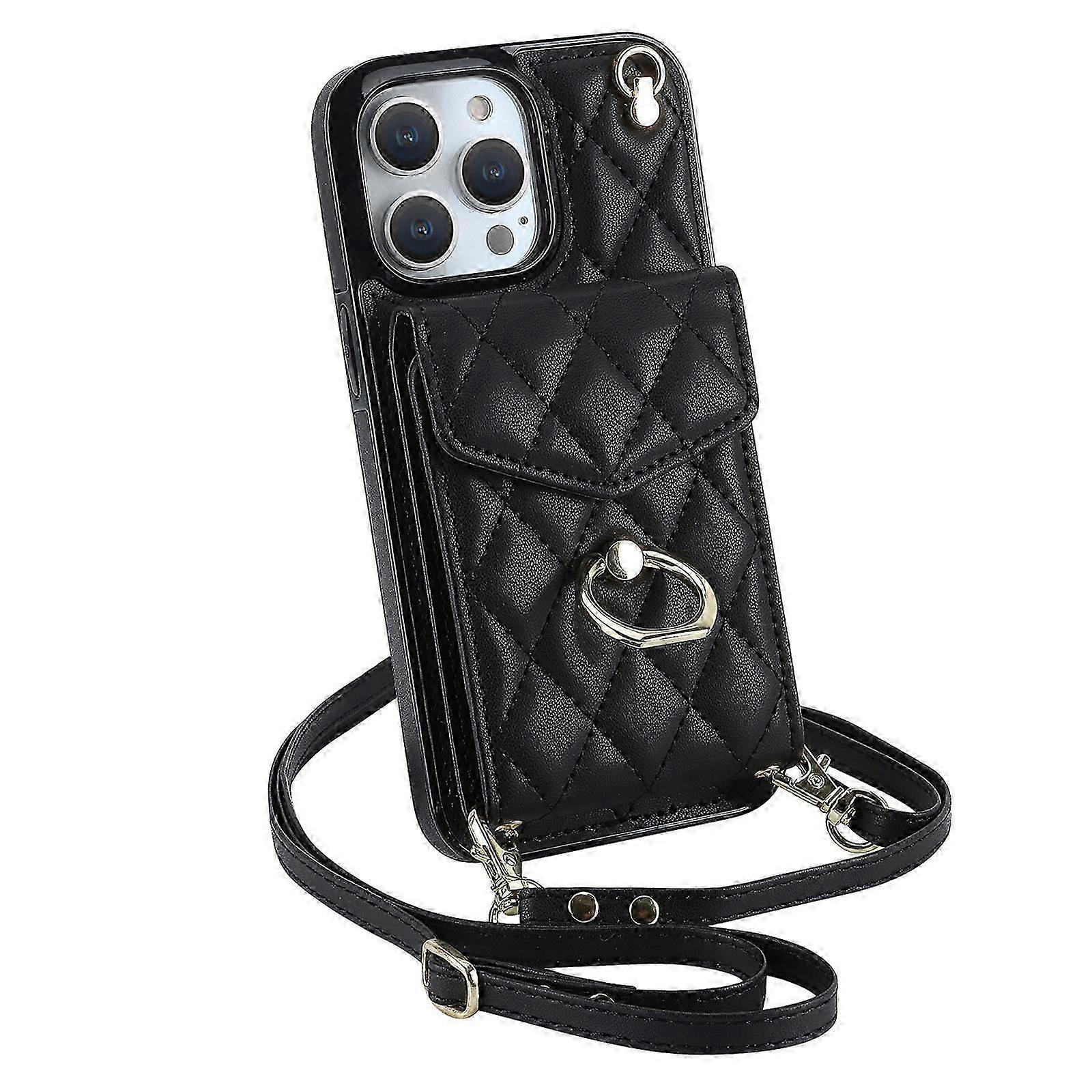 Crossbody Wallet Case for iPhone 15 Pro Max/ 15 Ultra, PU Leather Handbag Purse Cover with Card Slots Holder Wrist Strap Lanyard