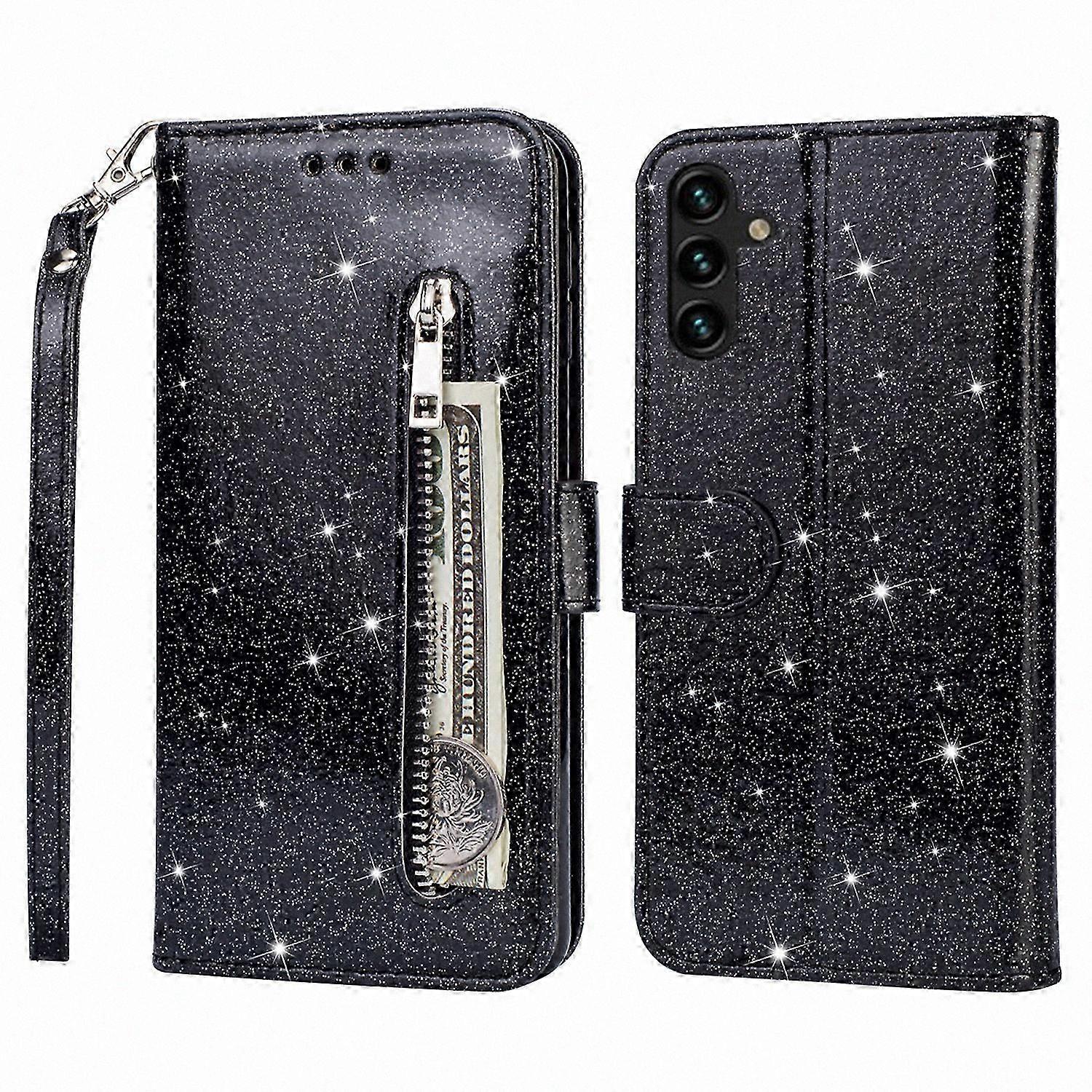 Glittery PU Leather Case with Zipper Pocket for 4G Smartphones