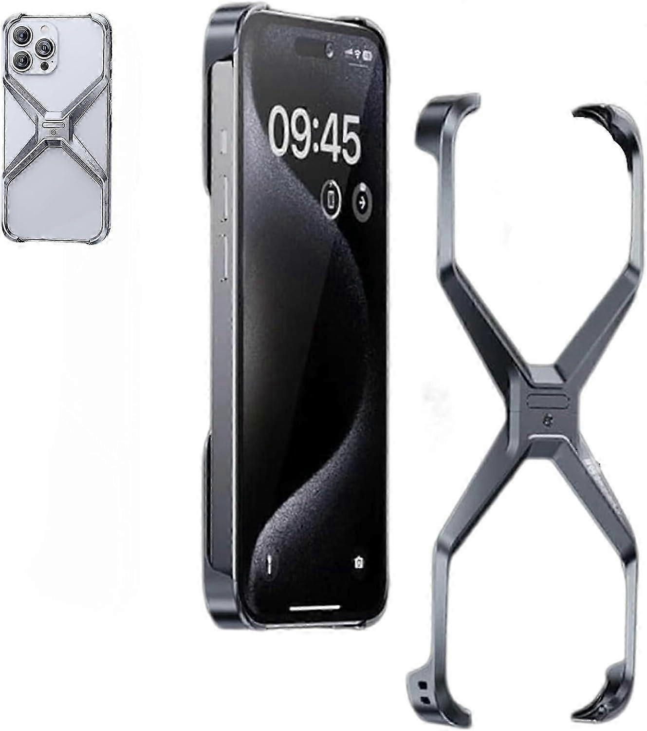 X Shape Anti-Fall Bare Phone Case, X Shaped Metal Frame for iPhone 15/15 Pro/15 Pro Max, Dissipate Heat Frameless Aluminum Alloy Anti-Fall Phone Case