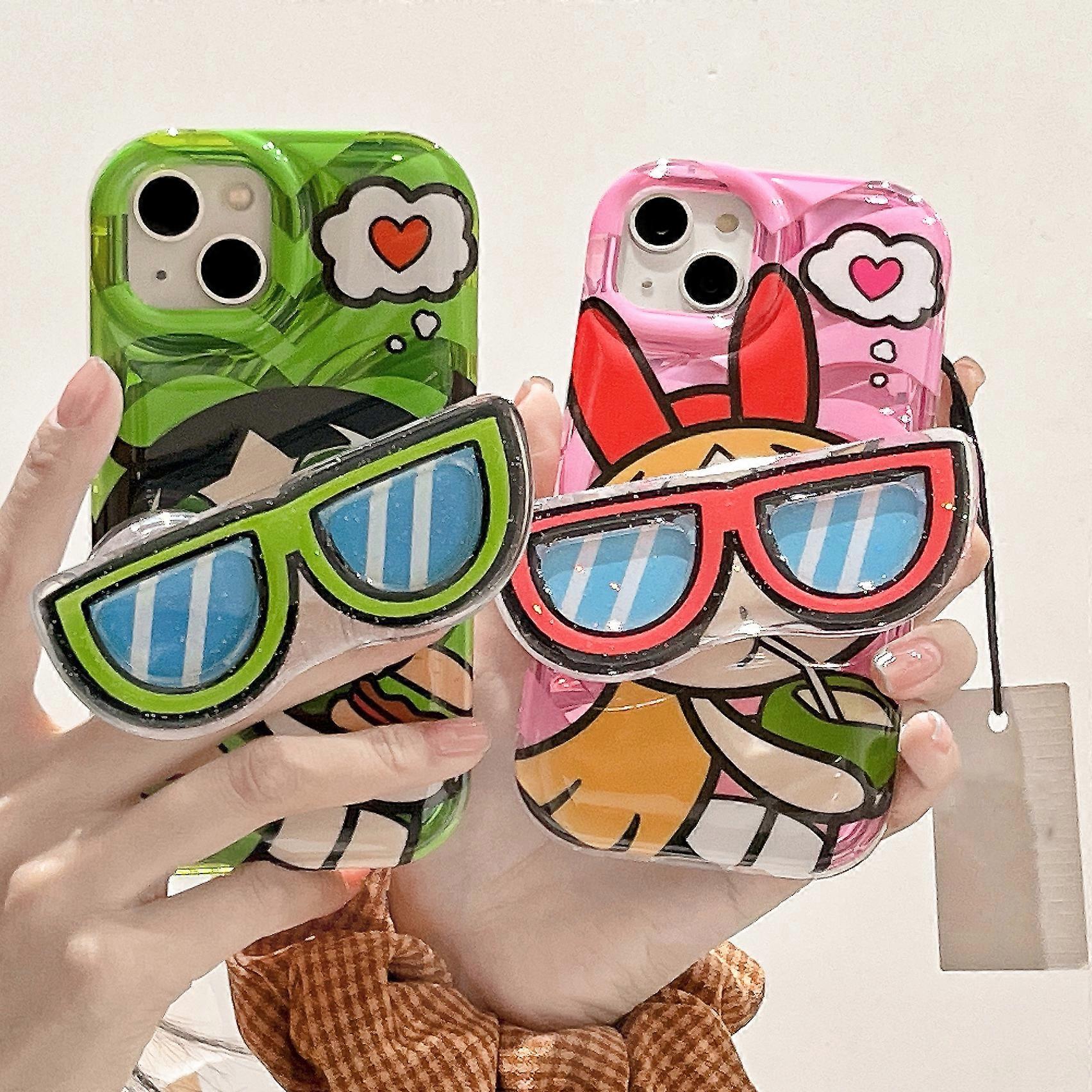 Cartoon Powerpuff Girls Bracket Phone Case for iPhone 14 13 12 11 Pro Max X XR XS 6 6S 7 8 Plus SE 2020 Soft Silicone Back Cover