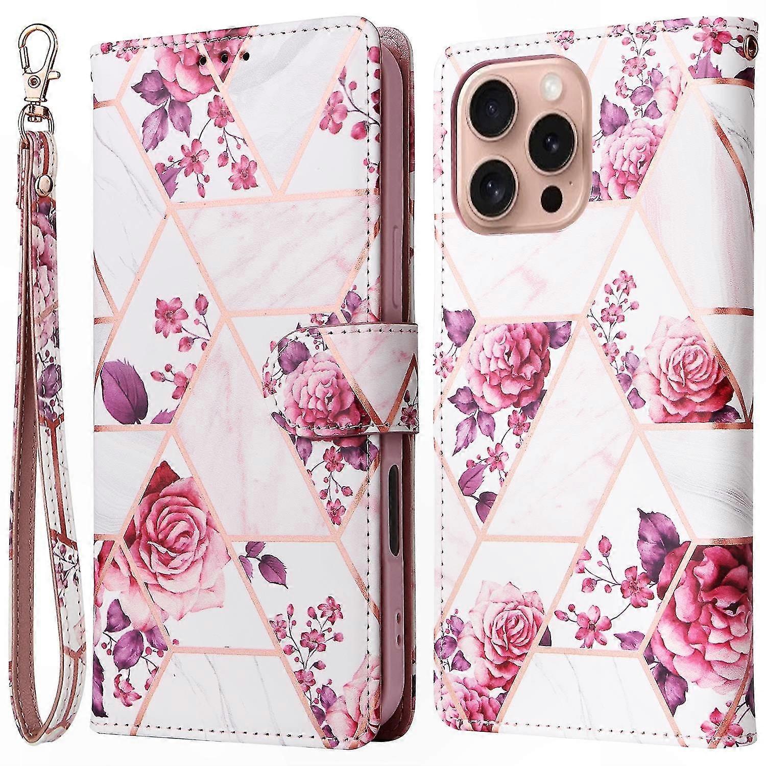 Marble Pattern Lacquered Leather Phone Case for 16 Pro - Black Design Shell
