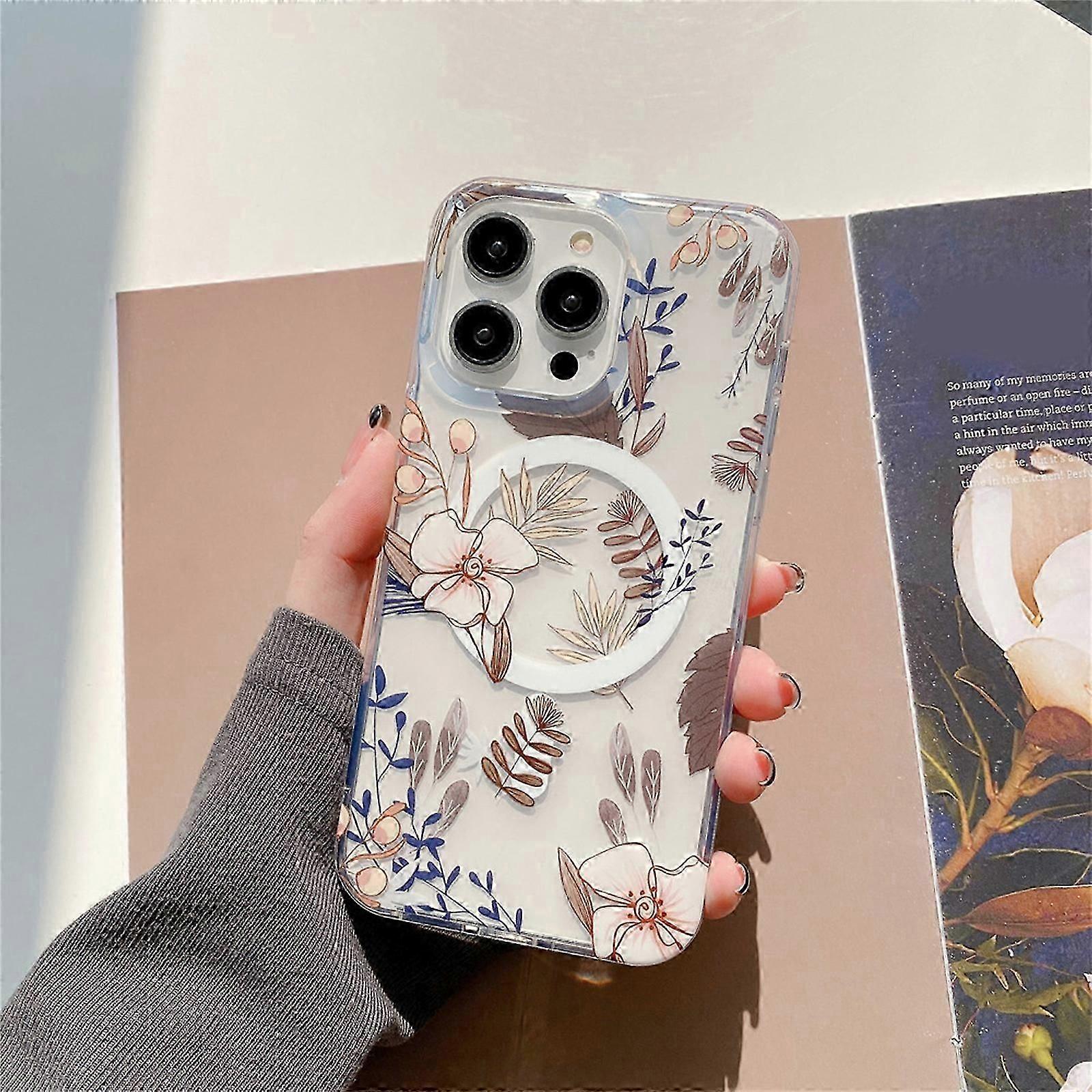 Magnetic Floral Clear Shockproof Women Phone Case for iPhone 15 Pro Max/ 15 Ultra Compatible with MagSafe