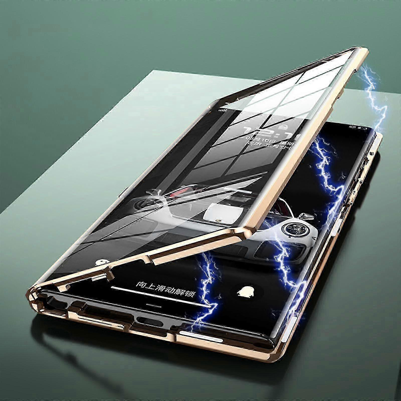 5G Phone Case with Magnetic Closure, Dual-Sided Shield, Glass & Metal Frame Hybrid Leather Cover for Enhanced Protection