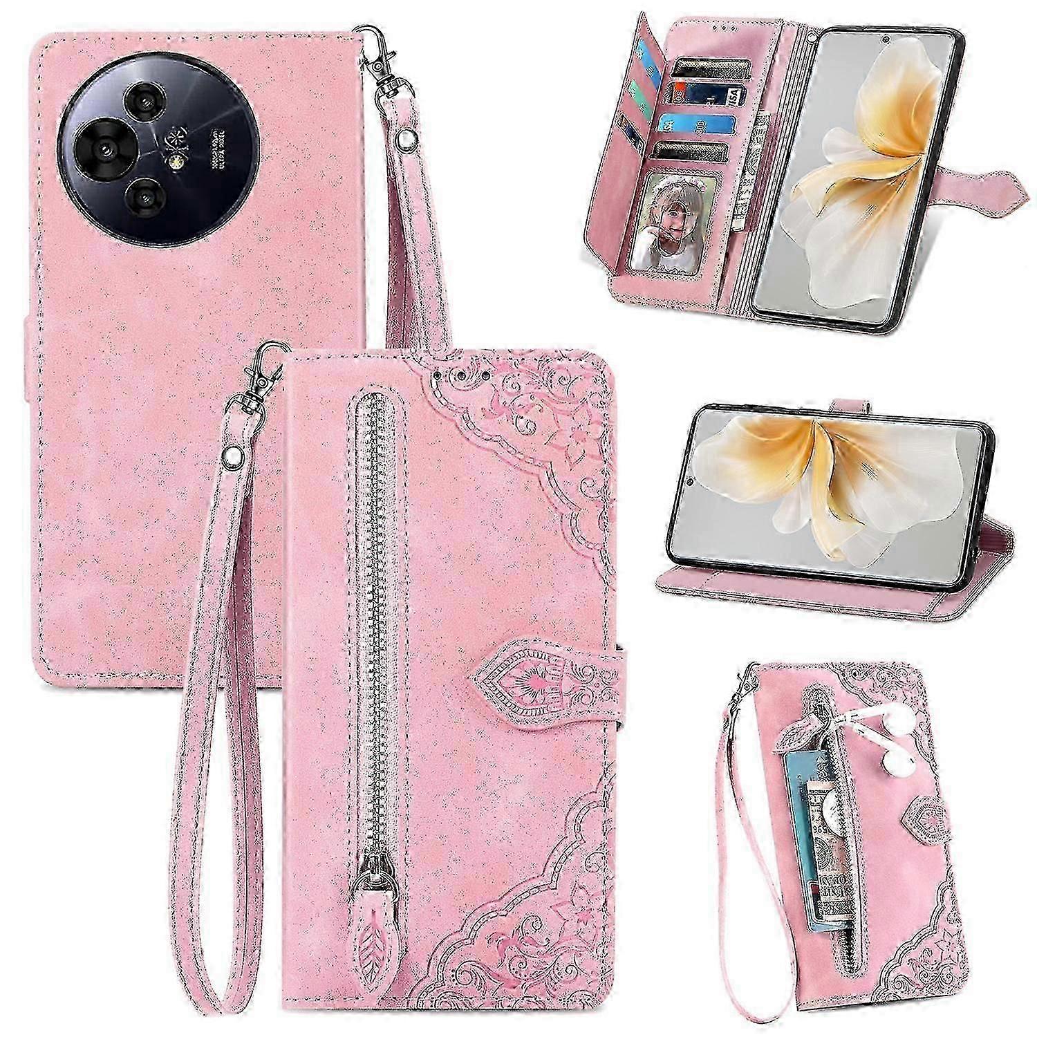 For TCL 50 Pro NxtPaper 5G Case Zipper Wallet PU Leather Flower Imprint Phone Cover