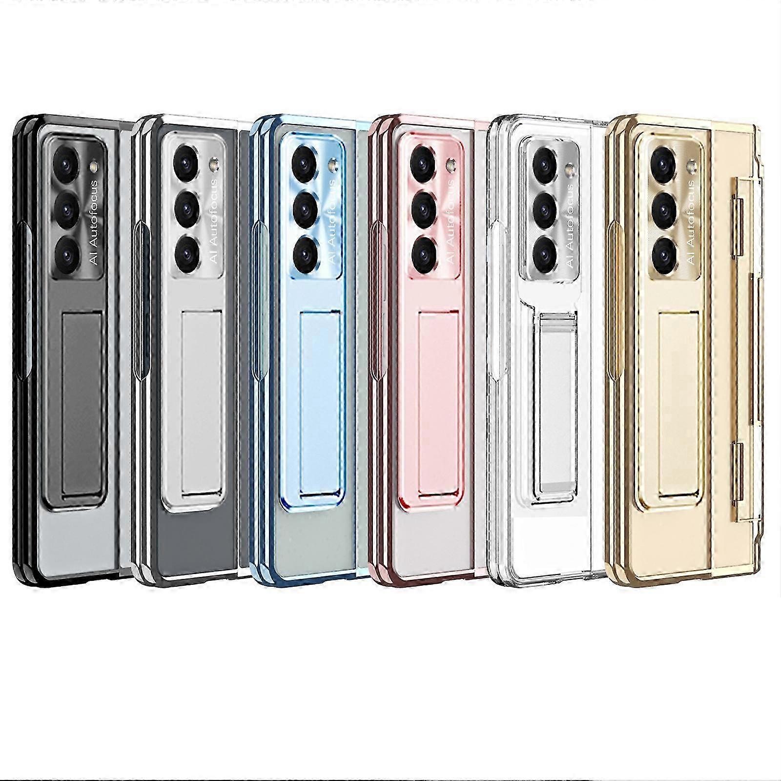Z Fold 5 Case with Stand, Luxury Transparent Plating Case Built-in Screen Protector and Kickstand Cover for Samsung Galaxy Fold 5