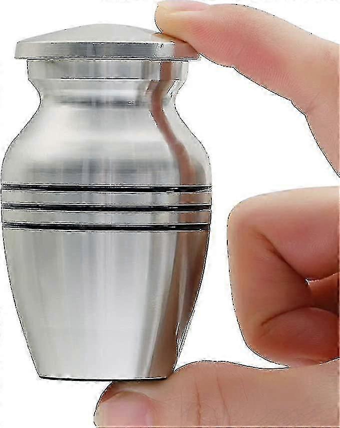 Small Souvenir Urn For Human Or Pet Ashes, Hard Metal Cremation Urn, Mini Funeral Urn With Velvet Bag, 1 Piece, Silver