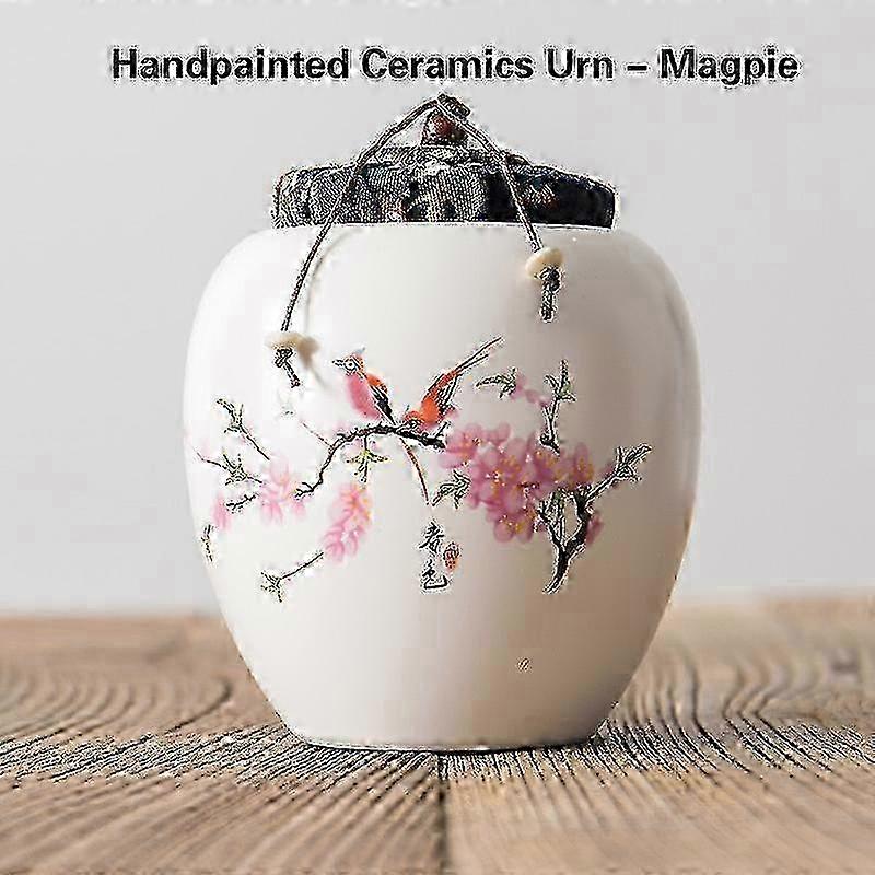 Ceramics Ashes Urn Handpainted Cremation Urn Funeral Ashes Holder Pet Memorial Leaves